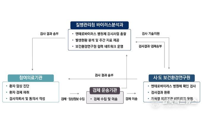 '엔테로바이러스 감염증 병원체 감시사업'은 엔테로바이러스 감염증을 유발하는 병원체의 조기 발견과 대응을 위한 감시체계로 병원체 특성 분석 및 유행 경향 파악을 통해 감염병 예방 대책을 위한 과학적 근거자료를 생산하고 있다.
