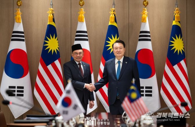 경북팩트뉴스 황혜경 기자 | 윤석열 대통령은 11월 25일 한국을 공식 방문 중인 '안와르 이브라힘(Anwar Ibrahim)' 말레이시아 총리와 정상회담을 갖고, 양국 간 협력 증진 방안과 지역 및 국제 정세에 대해 심도 있게 의견을 교환했다.