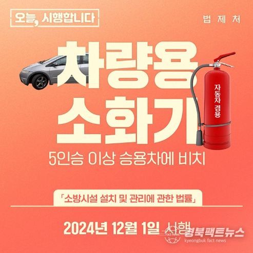 5인승 이상의 자동차를 제작·조립·수입·판매하려는 자 또는 자동차의 소유자는 차량용 소화기를 비치해야 합니다.