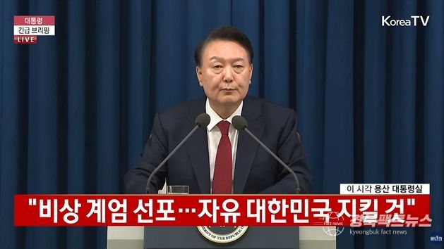 경북팩트뉴스 황혜경 기자 | 윤석열 대통령이 3일 밤 10시25분께 용산 대통령실에서 긴급 담화를 갖고 “자유 헌정질서를 지키기 위해 비상계엄을 선포한다”고 밝혔다.