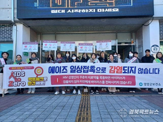 경북팩트뉴스 조현묵 기자 | 영양군은 제 37회 세계 에이즈의 날 12월 1일을 맞아 12월 한 달 동안 영양군 주민들을 대상으로 에이즈 인식개선 캠페인 및 에이즈 익명·무료 검사 등 집중홍보를 실시한다.
