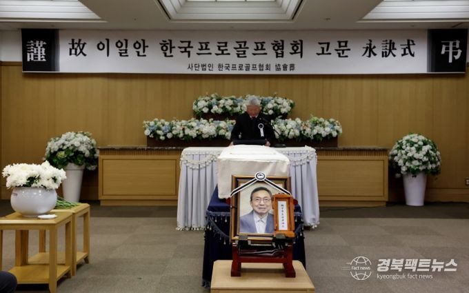 경북팩트뉴스 조현묵 기자 | 지난 14일 별세한 (사)한국프로골프협회(이하 KPGA) 창립회원 故 이일안 고문(회원번호 TP 1968-0010)의 영결식이 17일 오전 서울 아산병원 장례식장에서 엄수됐다.