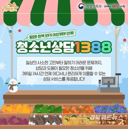 경북팩트뉴스 이경원 기자 | 일상의 사소한 고민부터 말하기 어려운 문제까지, 상담과 도움이 필요한 청소년을 위해 365일 24시간 언제 어디서나 편리하게 이용할 수 있는 상담 서비스를 제공합니다.