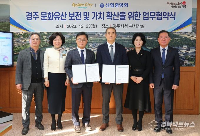 경북팩트뉴스 김영란 기자 | 경주시와 신협중앙회가 문화유산 보전과 가치 확산을 위한 업무협약을 23일 시청 대외협력실에서 가졌다.