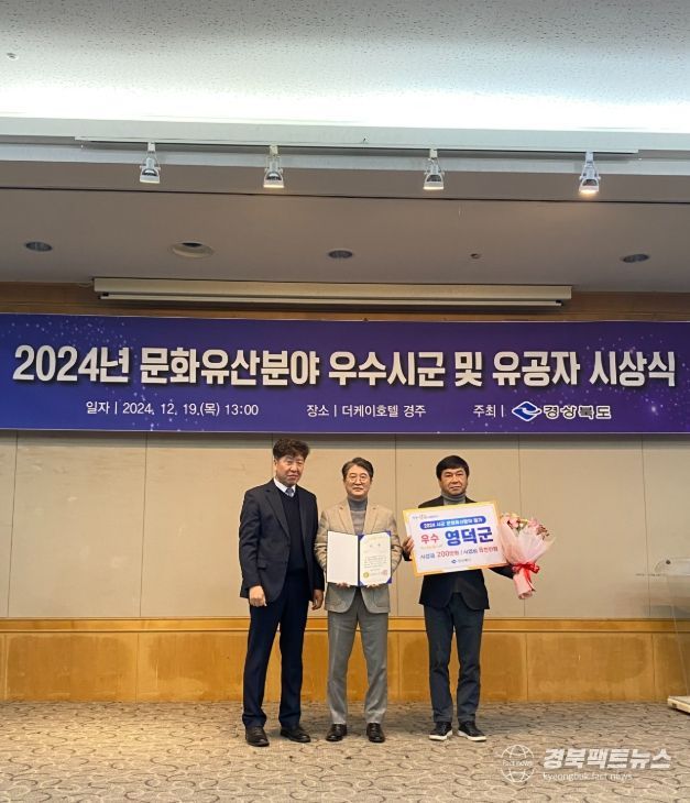 경북팩트뉴스 김영란 기자 | 영덕군이 지난 19일 경상북도가 주최하는 2024년 경상북도 문화유산 분야 평가 시상식에서 우수상을 받았다.
