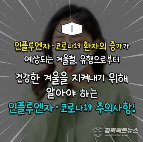 경북팩트뉴스 이경원 기자 | 콜록콜록, 한동안 주춤하던 인플루엔자·코로나19가 다시 유행하는 겨울입니다. 인플루엔자·코로나19 두 가지 질병이 동시에 유행하는 ‘트윈데믹’에 빨간불이 켜진 요즘, 꼭 알아둬야 하는 주의사항 알려드립니다.