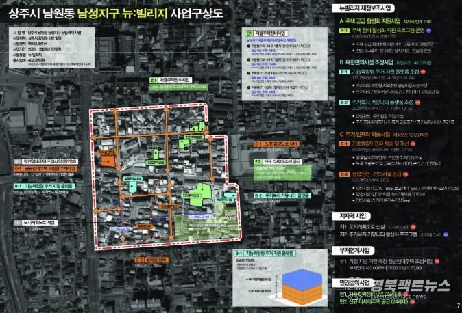 ‘남성지구 도시재생 뉴:빌리지 사업’은 총 402.2억 원(국비 150, 도비 25, 시비 75, 기타 152.2)의 예산이 투입되며, 상주시 남성동 일원에서 2025년부터 2029년까지 5년간 시행된다.
