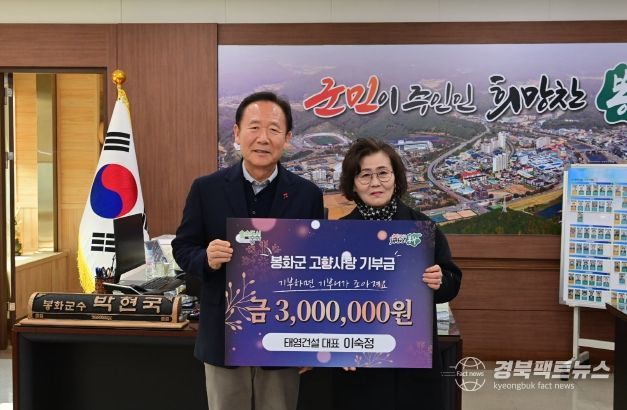 경북팩트뉴스 김영란 기자 | 태영건설 이숙정 대표는 26일 봉화군청을 방문해 고향사랑기부금 300만 원을 기탁했다.
