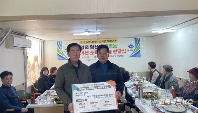 경북팩트뉴스 김영란 기자 | 25일 영덕 달산마을 공동영농 참여 농가에 크리스마스 선물처럼 첫 배당금이 지급됐다. 문경 영순지구에 이어 두 번째 소득배당이다.