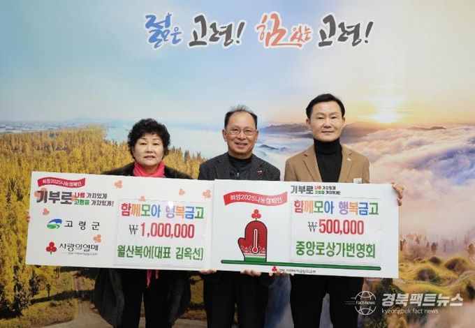 경북팩트뉴스 김영란 기자 | 월산복어(대표 김옥선)와 중앙로상가번영회에서 '희망20205나눔캠페인'에 동참하고자 12월 26일 고령군청을 방문하여 ‘함께모아 행복금고’성금(월산복어 100만원, 중앙로상가번영회 50만원)을 기탁했다.