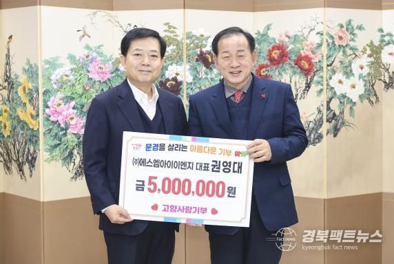 경북팩트뉴스 김영란 기자 | ㈜에스엠아이이엔지 권영대 대표가 지난 12월 26일 문경시에 고향사랑기부금 최고 한도인 500만 원을 기탁하며 고향 사랑을 실천했다.