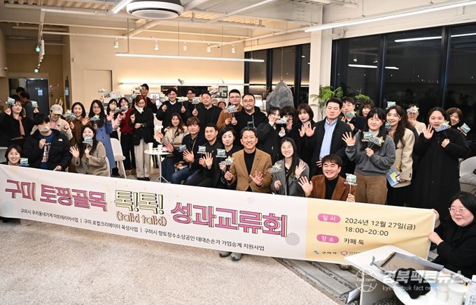 경북팩트뉴스 김영란 기자 | 구미시는 지난 27일 ‘카페 둑’에서 김장호 구미시장, 소상공인, 사업 담당자 등 40여 명이 참석한 가운데 소상공인 정책 및 지원사업 성과공유회 ‘구미 토핑골목 톡톡(talk,talk!!)’을 개최했다.