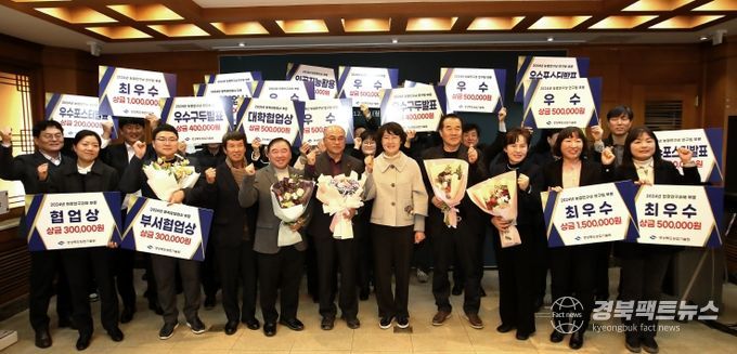 경북팩트뉴스 김영란 기자 | 경상북도농업기술원은 30일 회의실에서 ‘2024년 농업연구상 시상식’을 개최해 올 한 해 농업 연구와 현장 기술 개발에 뛰어난 성과를 이룬 연구자와 팀을 시상하고, 그간의 노력을 격려하는 자리를 가졌다.