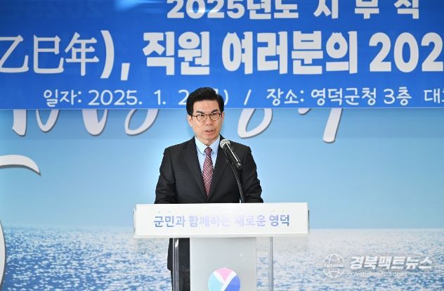 경북팩트뉴스 김영란 기자 | 김광열 영덕군수가 2일 청사 대회의실에서 열린 2025년 시무식에서 올해 6대 역점과제를 실현해 지방소멸을 막고 지역의 지속 가능한 성장을 이룩하겠다는 포부를 밝혔다.
