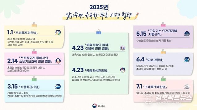 경북팩트뉴스 이경원 기자 | 2025년 알아두면 유용한 주요 시행 법령을 소개합니다.