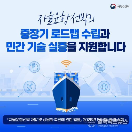 경북팩트뉴스 이경원 기자 | 자율운항선박의 중장기 로드맵 수립과 민간 기술 실증을 지원합니다.