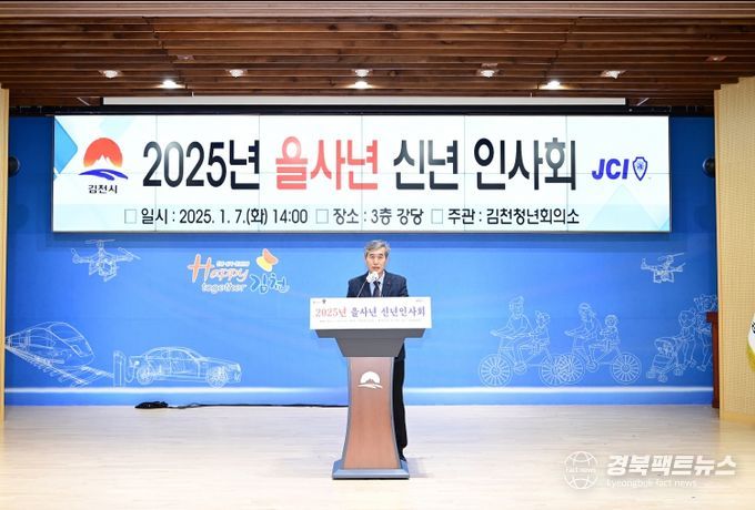 경북팩트뉴스 김영란 기자 | 2025년 푸른 뱀의 해(을사년)를 맞아 힘찬 시작과 새로운 도약을 다짐하는 ‘신년 인사회’가 7일 오후 14시 김천시청 3층 강당에서 열렸다.