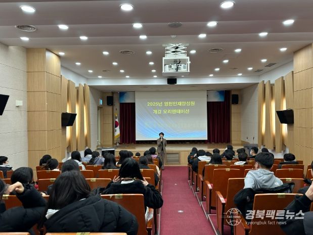 경북팩트뉴스 김영란 기자 | (재)영천시장학회는 지난 6일 시립도서관 1층 지산홀에서 중·고등학생 125여 명이 참석한 가운데 영천인재양성원의 연간 운영계획을 소개하는 자리인 ‘2025년 영천인재양성원 오리엔테이션’을 가졌다.