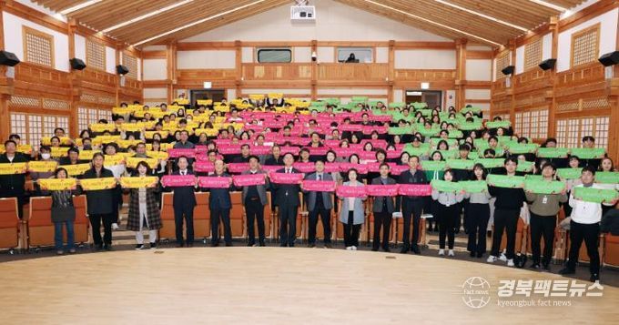 경북팩트뉴스 김영란 기자 | 칠곡군은 향사아트센터에서 공무원 및 군의회 의원 200여 명이 참석한 가운데 ‘2025년도 주요업무 · 군정 비전 공유회’를 개최하고 부서별 비전과 핵심사업을 공유하고 소통하는 시간을 가졌다.