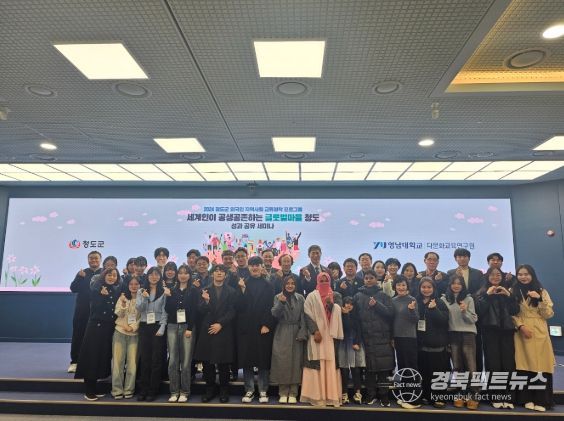 경북팩트뉴스 김영란 기자 | 청도군은 지난 14일 '외국인 지역사회 교류 정착 프로그램' 수탁기관인 영남대학교 다문화교육연구원(원장 정용교)과 1년 동안 외국인 유학생 50여 명이 참여하여 추진해 온 ‘외국인 지역사회 교류 정착 프로그램’ 성과 공유회를 성황리에 마쳤다.