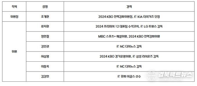 경북팩트뉴스 조현묵 기자 | KBO는 2025 KBO 전력강화위원회 구성을 완료했다.