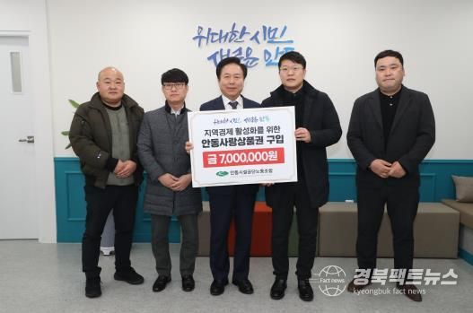 경북팩트뉴스 김영란 기자 | 안동시설공단노동조합은 9일 시장 소통실에서 안동사랑상품권 구매 행사를 가졌다.