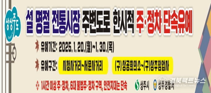 경북팩트뉴스 김영란 기자 | 상주시는 민족 고유의 명절인 설을 맞아 전통시장 활성화와 귀성객들의 편의를 위해 전통시장 주변 불법 주·정차 단속을 한시적으로 유예하기로 했다.