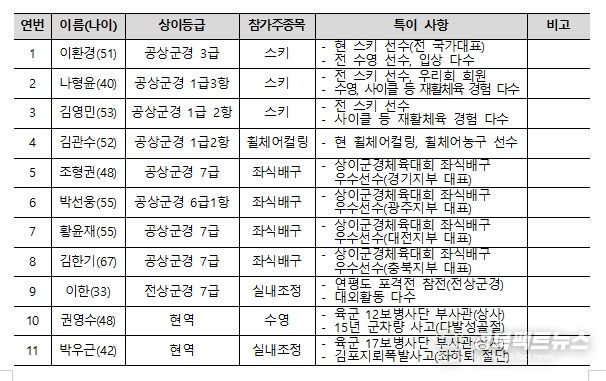 이희완 국가보훈부 차관은 “불굴의 정신과 의지로 신체적 한계를 뛰어넘는 도전에 나선 상이 국가유공자분들의 선전을 기원한다”면서 “국가보훈부는 상이 국가유공자 재활체육 지원 강화는 물론, 세계 상이군인들의 스포츠 축제이자 화합의 장인 ‘2029년 인빅터스 게임’의 아시아 최초 유치를 통해 대한민국의 위상을 높이기 위해 최선의 노력을 다하겠다”고 밝혔다.