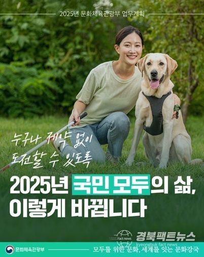 경북팩트뉴스 이경원 기자 | 누구나 제약없이 도전할 수 있도록 2025년 국민 모두의 삶, 이렇게 바뀝니다. 장애, 소득의 제한 없이 문화를 누릴 수 있도록 지원하는 '2025년 문화체육관광부 업무계획', 함께 알아볼까요?