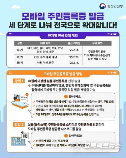 경북팩트뉴스 이경원 기자 | 모바일 주민등록증 발급 세 단계로 나눠 전국으로 확대합니다!
