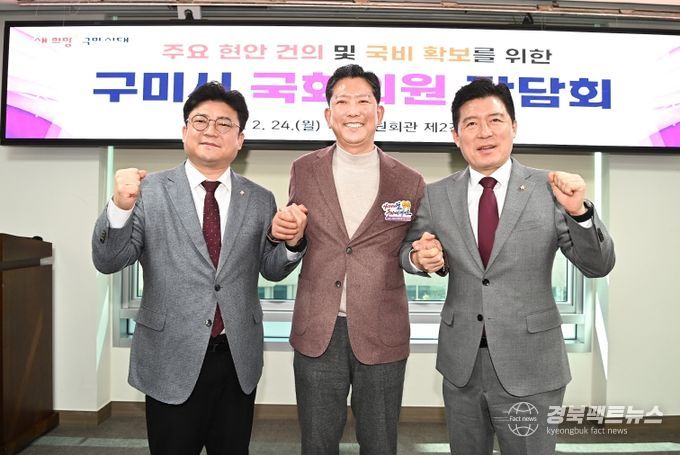 경북팩트뉴스 조현묵 기자 | 구미시는 24일 국회의원회관에서 구자근, 강명구 국회의원과 김장호 시장을 비롯한 주요 간부 공무원 등 30여 명이 참석한 가운데, 지역 현안 해결과 국비 확보를 위한 ‘구미시 국회의원 간담회’를 개최했다.