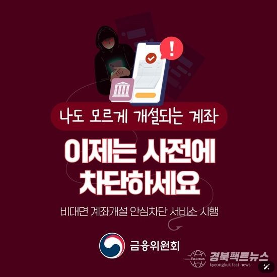 - 자금 세탁경로로 악용되는 것을 막을 수 있어 대포통장 근절에 기여(비대면 계좌개설 안심차단 서비스)