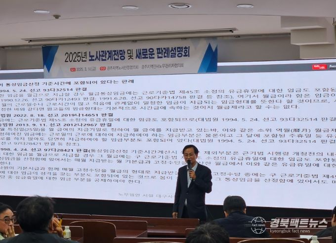 경북팩트뉴스 이영하 기자 | 경주지역 노사민정협의회는 지난 14일 동국대학교 원효관에서 지역 기업체 인사노무관리자 70여 명을 대상으로 노동관계법 교육을 실시했다.