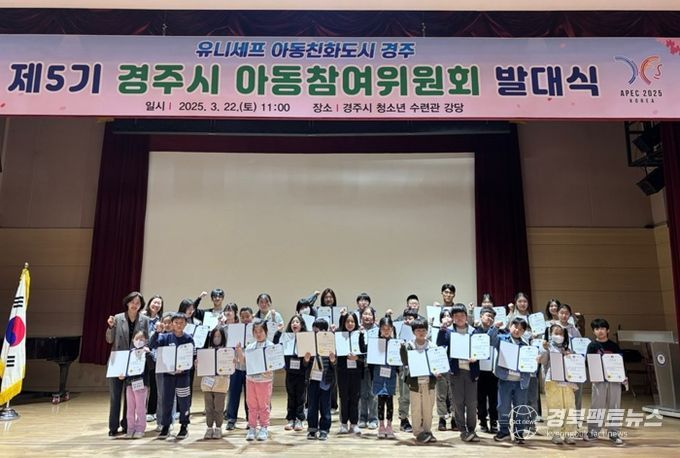 한편 지난해 12월까지 활동한 4기 아동참여위원회는 제2회 아동권리 골든벨, 경주시 아동·청소년 정책 제안 한마당대회 참가 및 아동권리 책자 제작에 참여했다.
