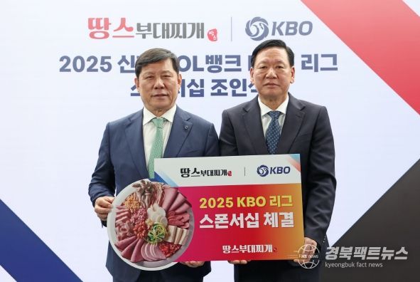 경북팩트뉴스 조현묵 기자 | KBO와 부대찌개 포장•배달 테이크아웃 전문점 땅스부대찌개는 3월 24일(월) KBO 스튜디오에서 조인식을 갖고 2025 KBO 리그 및 퓨처스리그 공식 스폰서십을 체결했다.