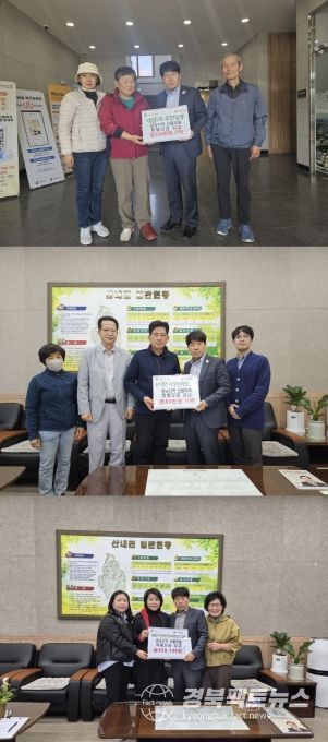 산내면행정복지센터는 지난 3일 산내면 내일1리 주민일동 100만원, 산내면자생단체장협의회 80만원의 성금을 영남지역 산불 특별모금에 기탁했다고 밝혔다.