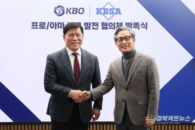 경북팩트뉴스 조현묵 기자 | KBO와 대한야구소프트볼협회(KBSA)는 4월 14일 KBO 에서 KBO 허구연 총재와 KBSA 양해영 회장이 참석한 가운데 프로·아마 야구 발전 협의체 발족식을 가졌다.