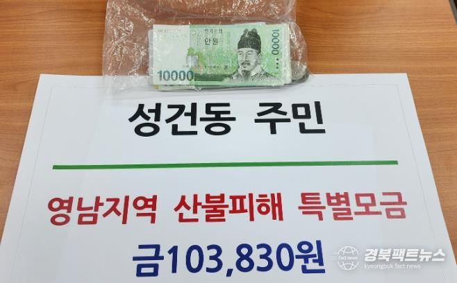 이날 성금을 직접 전달받은 성건동행정복지센터 공무원들은 “조용히 다녀가신 어르신의 따뜻한 마음에 깊은 울림을 느꼈다”며 “그 정성이 피해 주민들에게 꼭 전달될 수 있도록 하겠다”고 말했다.