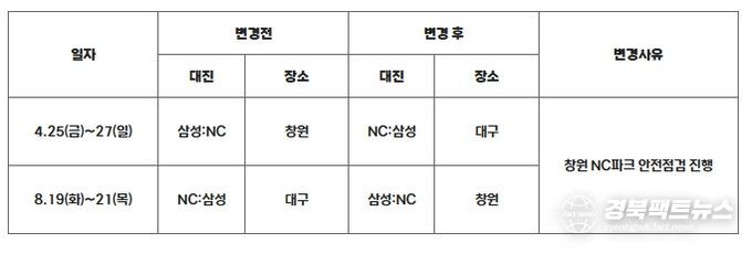 현재 창원NC파크에 대한 최종 점검 완료 시점이 결정되지 않음에 따라 이와 같이 결정됐다.