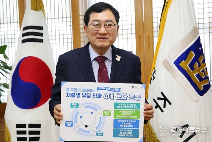 경북팩트뉴스 이영하 기자 | 경주시는 20일, 주낙영 경주시장이 ‘저출생 부담 타파 4대 문화운동’에 적극 동참했다고 밝혔다.