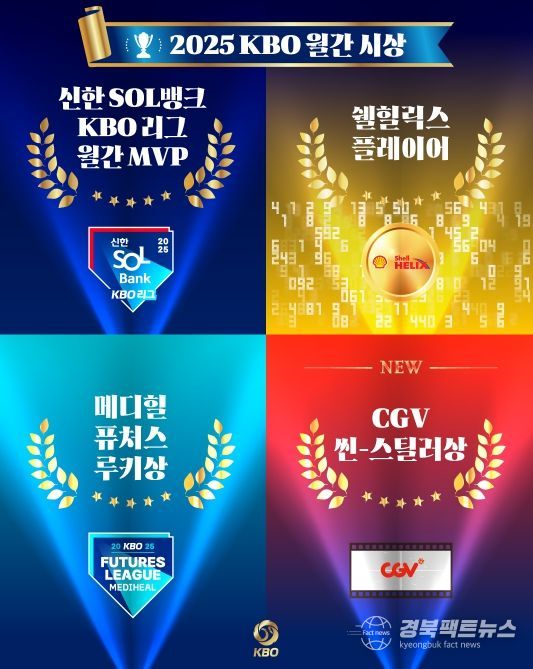 경북팩트뉴스 조현묵 기자 | 2025 신한 SOL뱅크 KBO 리그의 열기를 더할 월간 시상이 4개 부문에서 펼쳐진다.