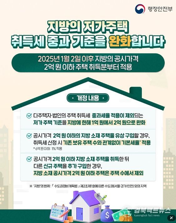 2025년 1월 2일 이후 지방의 공시가격 2억 원 이하 주택 취득분부터 적용