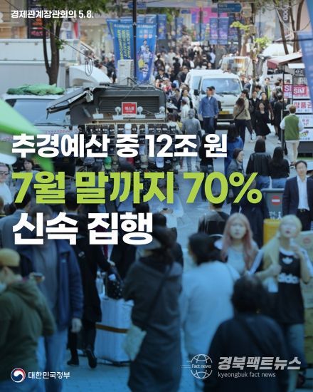 경북팩트뉴스 이경원 기자 | 전체 추경예산(13.8조 원) 중 12조 원을 집행관리 대상으로 삼고 7월 말까지 70% 이상 집행합니다.
