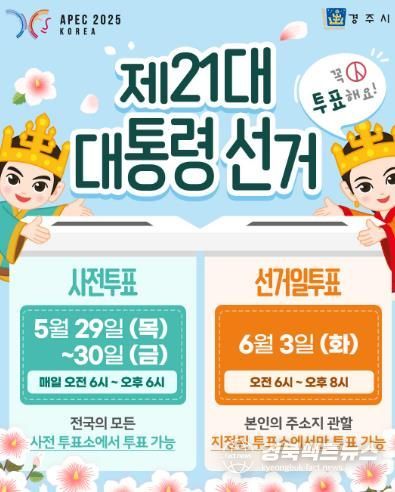 이를 위해 사전투표일(5월 29일~30일) 및 본투표일(6월 3일)을 전후로 청사 전광판과 읍면동 마을 방송, 경주시 공식 SNS 등 온‧오프라인 채널을 활용한 집중 홍보를 전개하고 있다.