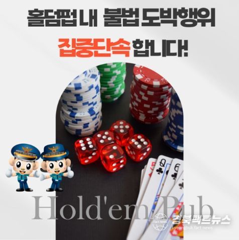 경북팩트뉴스 이경원 기자 | 경찰청 국가수사본부는 5.1.(목)부터 8.31.(일)까지 4개월 동안 홀덤펍 등에서 행해지는 불법 도박행위를 집중적으로 단속한다고 밝혔는데요!