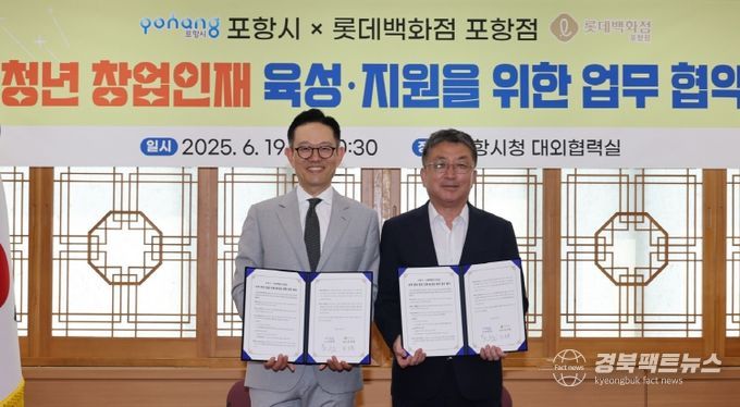 시는 19일 시청 대외협력실에서 롯데백화점 포항점과 청년 창업 인재 육성을 위한 업무 협약을 체결했다.