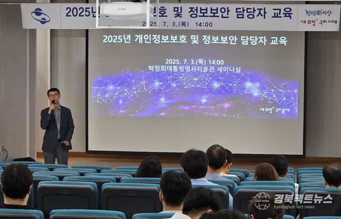 경북팩트뉴스 조현묵 기자 | 구미시는 지난 3일 박정희대통령역사자료관 세미나실에서 개인정보보호 및 정보보안 업무담당자 100여 명을 대상으로 ‘2025년 개인정보보호 및 정보보안 교육’을 실시했다.