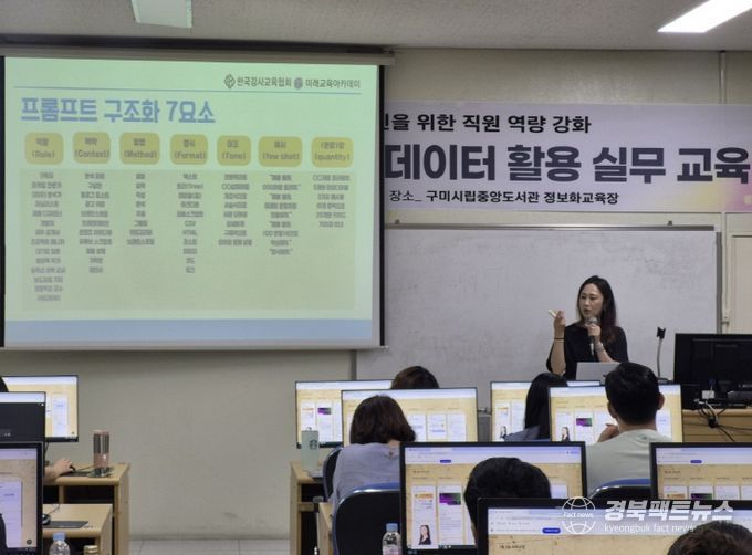 경북팩트뉴스 조현묵 기자 | 구미시는 지난 3일 시립중앙도서관 정보화교육장에서 직원 60명을 대상으로 ‘챗GPT 활용 실무 교육’을 실시했다.