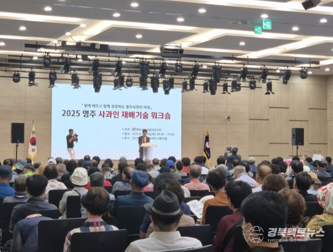 경북팩트뉴스 남유신 기자 | 영주시사과발전연구회(회장 김진학)가 주관한 ‘2025 영주사과인 재배기술 워크숍’이 지난 7월 8일 영주 선비세상 컨벤션홀에서 성황리에 개최됐다.