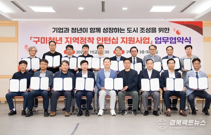 경북팩트뉴스 조현묵 기자 | 구미시는 청년 인재의 타지역 유출을 막고 지역 정착을 유도하기 위해 대학과 마이스터고, 기업 등 18개 기관과 함께 ‘구미청년 지역정착 인턴십 지원사업’을 본격 추진한다.